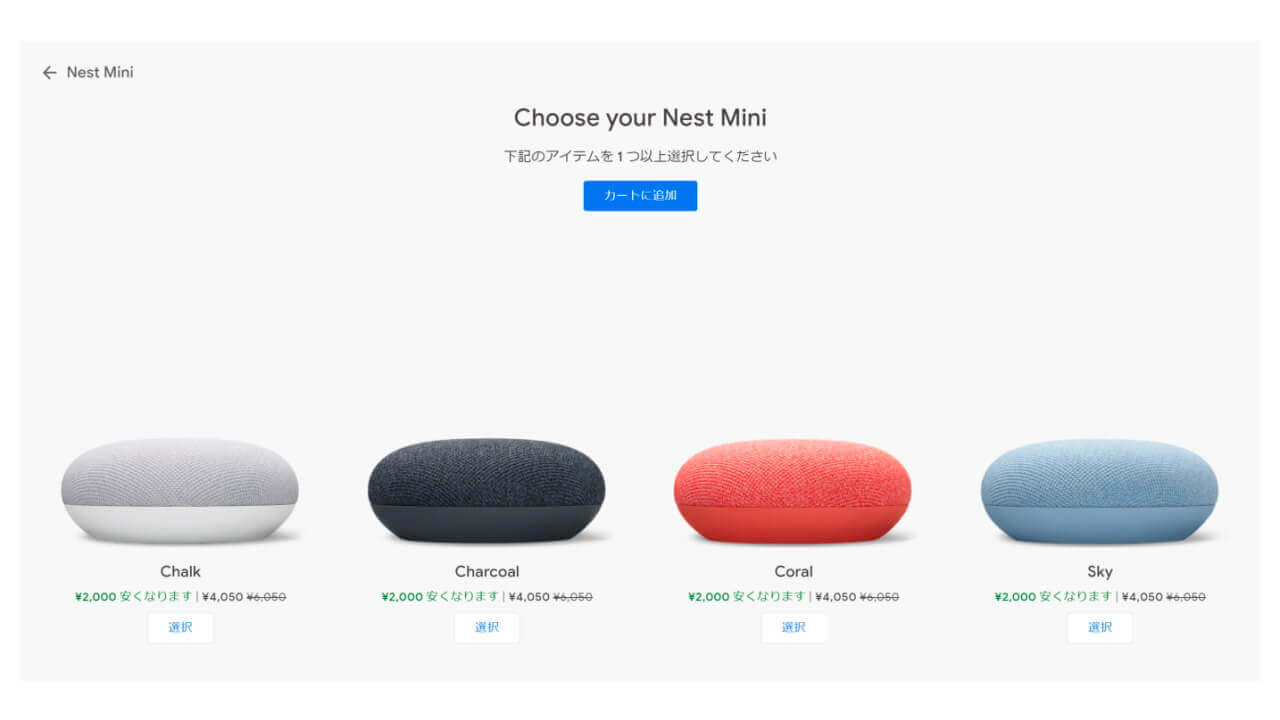 - 「Nest Mini」が税込み 6,050 円 → 4,050 円など